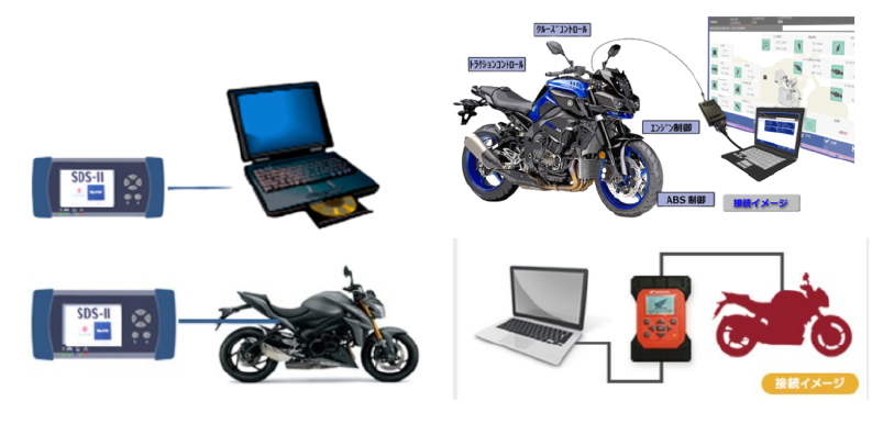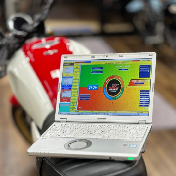 最近の真新しいバイク屋さんではスタッフさんが「キャブレター整備」をした事がないから整備を受けられない、という事があるそうです。弊社ではベテランメカニックがキャブレター分解整備・マルチエンジンのキャブ同調調整は勿論、エンジンの分解整備も行います。 ![]() 専用診断機で故障診断