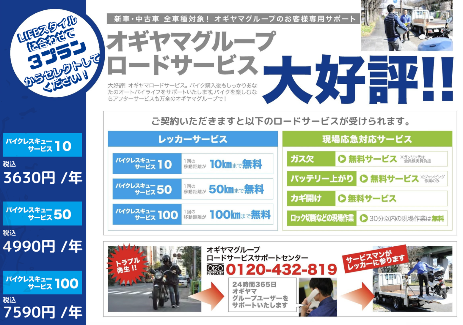 完全予約制(電話・メールにて予約) オギヤマバイクレスキュー出先でのトラブルに外出先でエンジンがかからない・バッテリーが上がった・パンクして走れない・風で倒れてミラーと